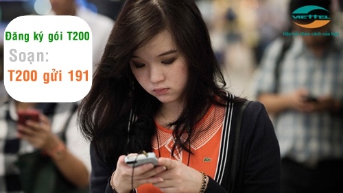Gói cước T200 Viettel là gói cước 3G khuyến mãi của nhà mạng áp dụng cho các thuê bao di động nhận được tin nhắn mời đăng ký gói cước từ tổng đài hoặc có tên trong danh sách chọn lọc ngẫu nhiên của hệ thống. Gói cước này giúp khách hàng tiết kiệm rất nhiều chi phí mua thẻ điện thoại Viettel nạp tiền cho tài khoản để đăng ký 3G Viettel.